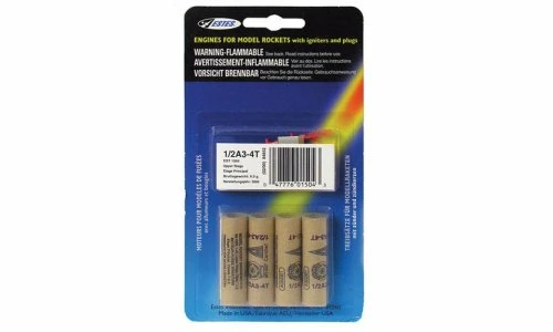 The Estes A3-4T engine is single stage engine designed for model rocket flight. This engine is a mini engine designed for flights in lightweight rockets. Each package includes 4 engines, 4 igniters and 4 igniter plugs.