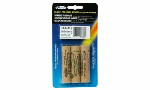 The Estes B4-2 engine is single stage engine designed for model rocket flight. This engine is a standard engine designed for flights in rockets weighing less than 4 ounces, including the engine. Each package includes 3 engines, 3 igniters and 4 igniter plugs.