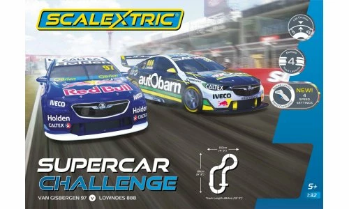 The Scalextric Supercar Challenge set allows you to create all the thrills and spills of the most iconic race car series in Australian Motorsport right in your very own home.