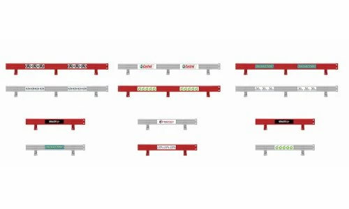 Tired of your cars spinning off across the carpet? These easily detachable and applicable barriers are perfect for keeping your sliding cars facing the right way. Complete with sponsor logos from different eras they are a great accessory for anyone learning to race, or who likes to push just a bit too hard!