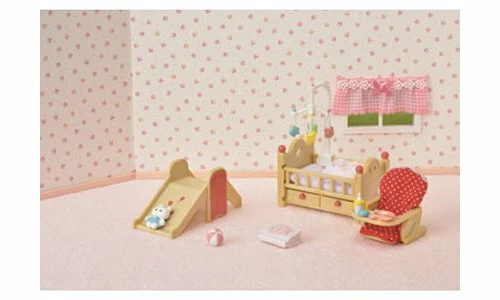 The Baby Nursery Set will help to create a lovely area for baby in the nursery. It includes a crib with mobile, a high chair with accessories and a slide for playtime in the nursery. Suitable from 3 yrs+