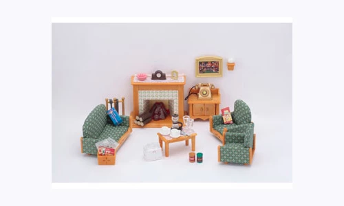 Deluxe Living Room Set is a relaxed and cosy setting with over 35 detailed pieces including a glowing fireplace with extra logs, a comfortable sofa and armchair, a rack with newspapers and magazines plus a coffee table, telephone and clock. Figures not included.
